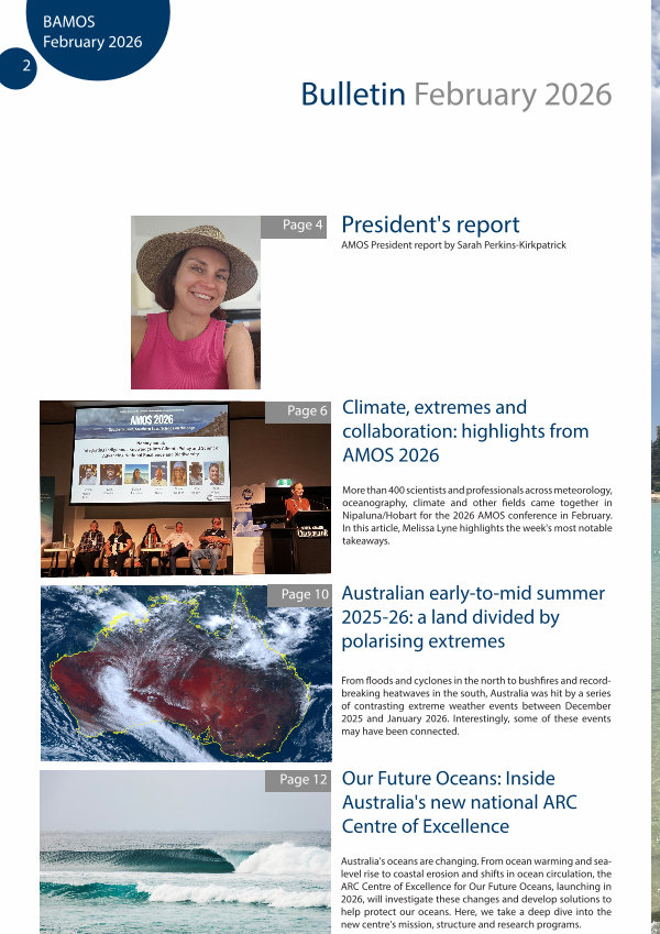 More than 400 scientists and professionals across meteorology, oceanography, climate and other fields came together in Nipaluna / Hobart for the 2026 AMOS conference in February. In this article, Melissa Lyne highlights the week ' s most notable takeaways.