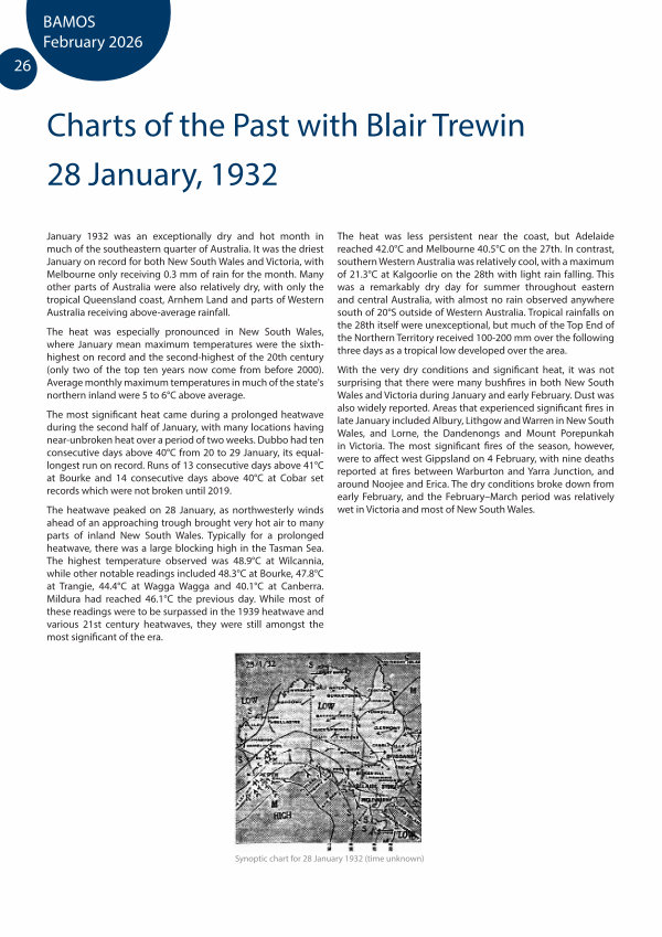 January 1932 was an exceptionally dry and hot month in much of the southeastern quarter of Australia. It was the driest January on record for both New South Wales and Victoria, with Melbourne only receiving 0.3 mm of rain for the month. Many other parts of Australia were also relatively dry, with only the tropical Queensland coast, Arnhem Land and parts of Western Australia receiving above-average rainfall.