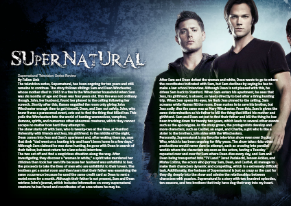 Personally, Supernatural is my favorite television show even over Doctor Who, which is has been ongoing for fifty years. The show takes risks other productions would never dare to attempt, such as crossing into parallel worlds where the characters are seen as the actors, having a Tuesday repeated over and over for Sam where Dean dies every day, and Sam and Dean being transported into “TV Land.” Jared Padalecki, Jensen Ackles, and Misha Collins, the actors who portray Sam, Dean, and Castiel, all manage to make their characters dynamic and compelling, which is a extremely difficult task. Additionally, the fanbase of Supernatural is just as crazy as the cast for they dig deeply into the show and admire the relationships between characters with passion. Supernatural is a story with two hundred episodes, ten seasons, and two brothers that truly have dug their way into my heart.