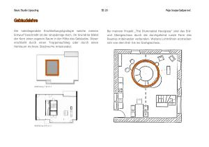 Bei meinem Projekt „ The Illuminated Hourglass “ sind das Erdund Obergeschoss durch die durchgehend runde Form des Raumes miteinander verbunden . Weitere Lichtröhren erstrecken sich von dem Erd- bis ins Dachgeschoss .