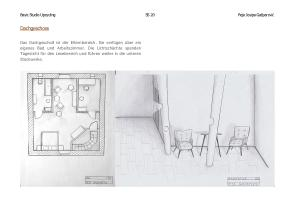 Das Dachgeschoß ist der Elternbereich . Sie verfügen über ein eigenes Bad und Arbeitszimmer . Die Lichtschächte spenden Tageslicht für den Lesebereich und führen weiter in die unteren Stockwerke .