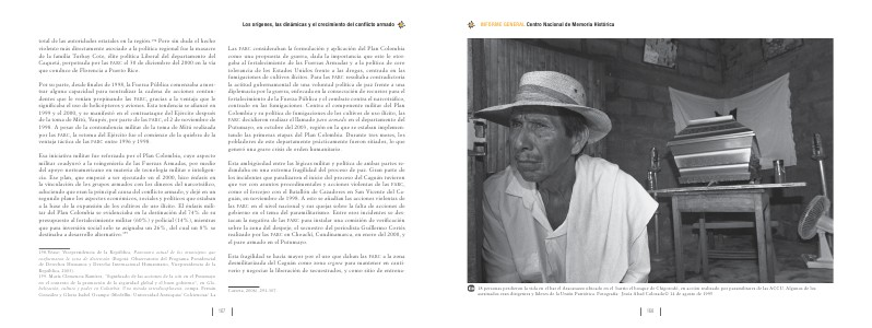 158. Véase: Vicepresidencia de la República, Panorama actual de los municipios que conformaron la zona de distensión( Bogotá: Observatorio del Programa Presidencial de Derechos Humanos y Derecho Internacional Humanitario, Vicepresidencia de la República, 2003). 159. María Clemencia Ramírez,“ Significado de las acciones de la aid en el Putumayo en el contexto de la promoción de la seguridad global y el buen gobierno”, en Globalización, cultura y poder en Colombia: Una mirada interdisciplinaria, comps. Fernán González y Gloria Isabel Ocampo( Medellín: Universidad Antioquia / Colciencias / La
