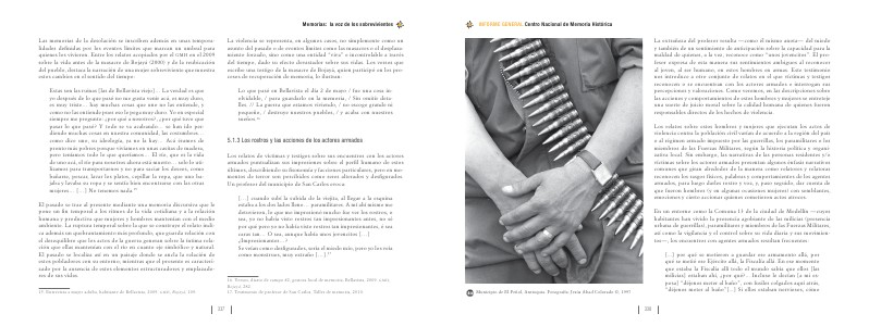 Los relatos sobre estos hombres y mujeres que ejecutan los actos de violencia contra la población civil varían de acuerdo a la región del país o al régimen armado impuesto por las guerrillas, los paramilitares o los miembros de las Fuerzas Militares, según la historia política y organizativa local. Sin embargo, las narrativas de las personas residentes y / o víctimas sobre los actores armados presentan algunos énfasis narrativos comunes que giran alrededor de la manera como relatores y relatoras reconocen los rasgos físicos, palabras y comportamientos de los agentes armados, para luego darles rostro y voz, y, paso seguido, dar cuenta de que fueron hombres( y en algunas ocasiones mujeres) con semblantes, emociones y cierto accionar quienes cometieron actos atroces.