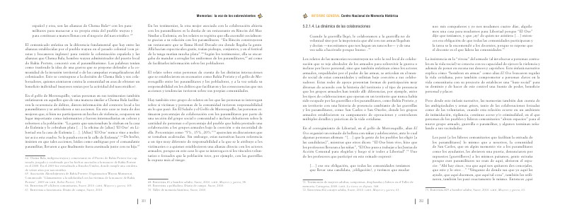 Hay también otro grupo de relatos en los que las personas se interrogan sobre si víctimas y personas de la comunidad tuvieron responsabilidad en lo que pasó. En El Salado y el Golfo de Morrosquillo, las personas estimaron porcentajes de colaboración con los paramilitares por parte de una sección del grupo social o comunidad e incluso debatieron sobre la cantidad de personas o el porcentaje del pueblo que había prestado una colaboración a los grupos armados bajo la coerción o sin necesidad de ella. Porcentajes como“ 5 %, 15 %, 20 %” 70 aparecían en discusiones que se tornaban acaloradas. Sin embargo, estas narrativas hacen referencia a un tipo muy diferente de responsabilidad a la que se le atribuye a los victimarios o a quienes establecieron una alianza directa con los actores armados, porque en este caso lo que se interroga es si los vínculos voluntarios o forzados que la población tuvo, por ejemplo, con las guerrillas la expuso más al riesgo.