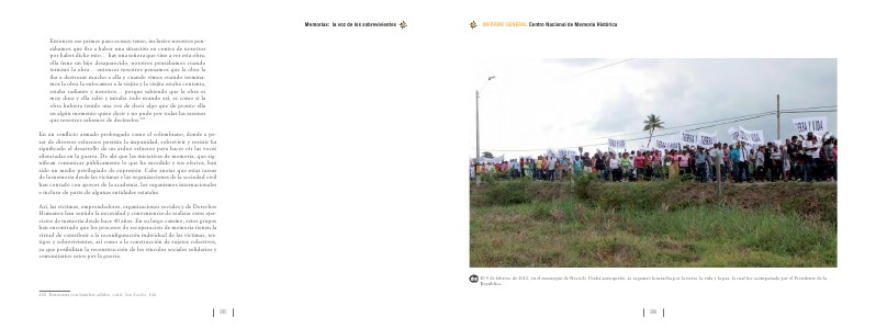 En un conflicto armado prolongado como el colombiano, donde a pesar de diversos esfuerzos persiste la impunidad, sobrevivir y resistir ha significado el desarrollo de un arduo esfuerzo para hacer oír las voces silenciadas en la guerra. De ahí que las iniciativas de memoria, que significan comunicar públicamente lo que ha sucedido y sus efectos, han sido un medio privilegiado de expresión. Cabe anotar que estas tareas de la memoria desde las víctimas y las organizaciones de la sociedad civil han contado con apoyos de la academia, los organismos internacionales e incluso de parte de algunas entidades estatales.