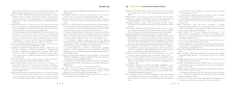 García-Peña, Daniel.“ La relación del Estado colombiano con el fenómeno paramilitar: por el esclarecimiento histórico”, Análisis político 18 53( 2004). Consultado el 31 de mayo del 2013. http:// www. scielo. unal. edu. co / scielo. php? script = sci _ arttext & pid = S0121- 47052005000100004 & lng = es & nrm =