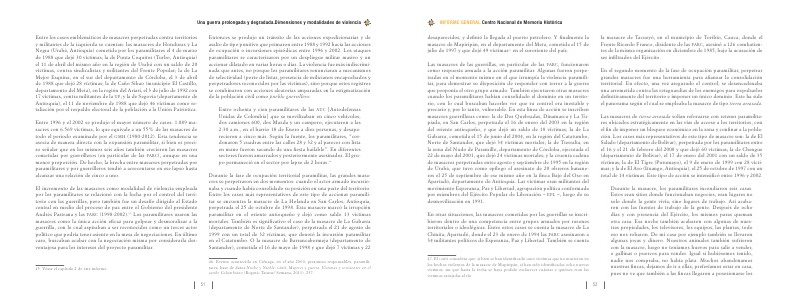 Entre ochenta y cien paramilitares de las auc [ Autodefensas Unidas de Colombia ] que se movilizaban en cinco vehículos, dos camiones 600, dos Mazda y un campero, ejecutaron a las 2:30 a. m., en el barrio 18 de Enero a diez personas, y desaparecieron a cinco más. Según la fuente, los paramilitares,“ cordonaron 5 cuadras entre las calles 28 y 32 y al parecer con lista en mano fueron sacando de una fiesta bailable”. En diferentes sectores fueron amarrados y posteriormente asesinados. El grupo permaneció en el sector por lapso de 2 horas. 46
