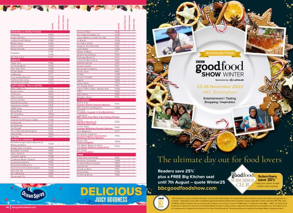 * 25 % discount is valid on standard admission only . Excludes VIP package . Free Big Kitchen seat in selected sessions only . Gold seat upgrades are available . ** Subscribers save 30 % on standard general admission tickets when using their unique subscriber number . Excludes VIP . Offer ends 07 / 08 / 23 . £ 3.95 transaction fee per e-ticket order . Details correct at time of print . The BBC logo is a trademark of the BBC . © BBC . The Good Food trademark is used under licence from Immediate Media Company London Limited . Organised and presented by Immediate Live . Immediate Live is the trading name of Upper Street Events Ltd and River Street Events Ltd . These businesses are owned by Immediate Media Company Limited .