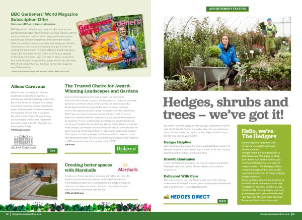 BBC Gardeners ’ World Magazine is the UK ’ s most trusted gardening publication . We empower our loyal readers with the practical skills and confidence to create a beautiful garden , appealing to complete beginners and seasoned experts alike , our content is clear , accessible and engaging . Head to subscription stand today to subscribe and get 6 issues for just £ 22.50 and a brand new pair of Niwaki Sentei Secateursworth £ 39 * delivered to your home . You ’ ll find us situated by the Subscriber Club Lounge in Hall 17 . Once a subscriber you ’ ll also be able to access the Lounge where you can enjoy 10 % off refreshments , meet the team behind the magazine and Q & A sessions !