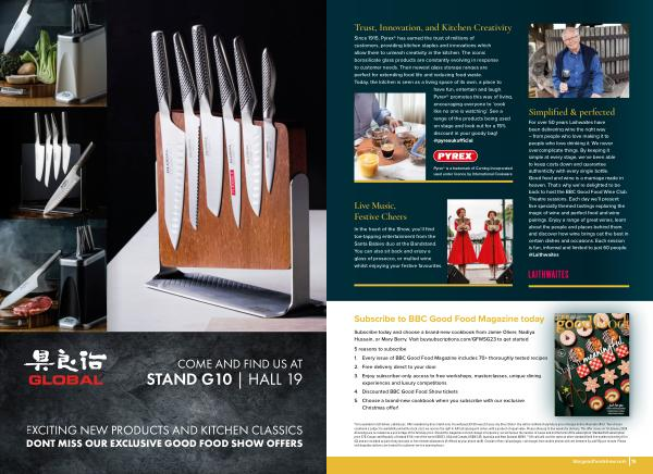 * Only available to UK delivery addresses . Offer available by direct debit only . You will pay £ 39.99 every 12 issues by Direct Debit . You will be notified of any future price changes before they take effect . Your chosen cookbook is subject to availability and while stocks last ; we reserve the right to fulfil all subsequent orders with a product of equal value . Please allow up to four weeks for delivery . This offer closes on 1st January 2024 . All savings are calculated as a percentage of the full shop price . Should the magazine ordered change in frequency , we will honour the number of issues and not the term of the subscription . Standard UK subscription price £ 78 ; Europe and Republic of Ireland € 110 ; rest of the world US $ 133 ; USA and Canada US $ 143.88 ; Australia and New Zealand A $ 160 . ** UK calls will cost the same as other standard fixed line numbers ( starting 01 or 02 ) and are included as part of any inclusive or free minutes allowances ( if offered by your phone tariff ). Outside of free call T60 packages , call charges from mobile phones will cost between 3p and 55p per minute . Please visit buysubscriptions . com / contact for customer service opening hours . bbcgoodfoodshow . com 15