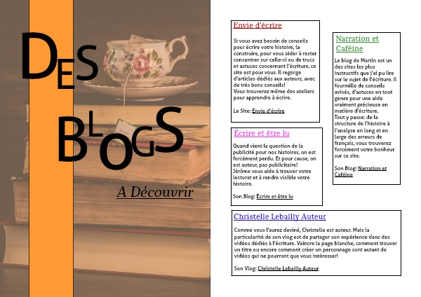 Le blog de Martin est un des sites les plus instructifs que j'ai pu lire sur le sujet de l'écriture. Il fourmille de conseils avisés, d'astuces en tout genre pour une aide vraiment précieuse en matière d'écriture.