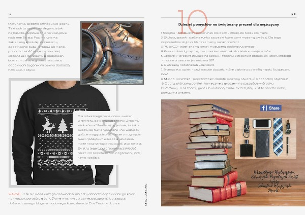 Dla odważnego pana domu, sweter w renifery, bałwanki lub choinki. Zrobimy wielkie " wow "! Pamiętajmy jednak, że takie swetry są humorystyczne i nie wszyscy goście mogą odebrać nasze „ mrugnięcie okiem” pozytywnie. Babcia lub ciocia może nasz strój potraktować jako nietakt. Swetry tego typu proponuję zakładać raczej na popołudniowe pogaduchy przy kawie i cieście.