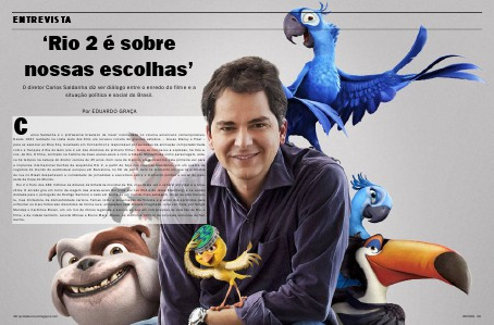 como a franquia A Era do Gelo (ele é um dos diretores do primeiro filme). Nada se comparou à explosão, há três anos, de Rio. O filme, centrado na história de duas araras-azuis e com a Cidade Maravilhosa como personagem, estava há tempos na cabeça do diretor carioca de 45 anos. Com cara de menino, ele apresentou pela primeira vez para