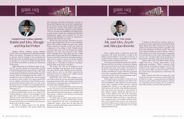 With a wisdom that belies his young age , Aryeh appreciates the step-by-step process that brought him to where he is today – a young man who has integrated the lessons of his rebbeim and his learning so that they are inseparable from his identity . We are gratified to honor Mr . and Mrs . Aryeh and Aliza Jacobowitz .
