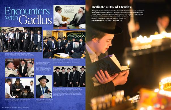 Through the Parnes HaYom program , the thousands of collective hours of Torah study taking place in the Yeshiva ’ s various divisions — from Preschool and Elementary School to Beis Medrash and Kollel — can serve as a zchus in honor or in memory of a loved one . Dedication details are displayed prominently throughout the Yeshiva .