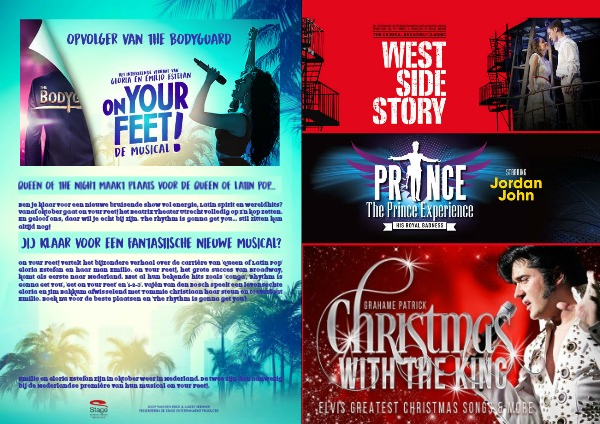 On Your Feet! vertelt het bijzondere verhaal over de carrière van 'Queen of Latin Pop' Gloria Estefan en haar man Emilio. On Your Feet!, het grote succes van Broadway, komt als eerste naar Nederland. Met al hun bekende hits zoals 'Conga', 'Rhythm is Gonna Get You', 'Get On Your Feet' en '1-2-3'. Vajèn van den Bosch speelt een levensechte Gloria en Jim Bakkum afwisselend met Tommie Christiaan haar steun en toeverlaat Emilio. Boek nu voor de beste plaatsen en 'The rhythm is gonna get you'!