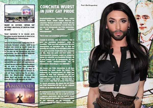 Songfestivalwinnares Conchita Wurst, actrice Romana Vrede, zanger Jeangu Macrooy en cabaretier Richard Groenendijk vormen dit jaar onder leiding van presentator Cornald Maas de jury van de botenparade van Pride Amsterdam. Dat heeft de organisatie maandag bekendgemaakt.
