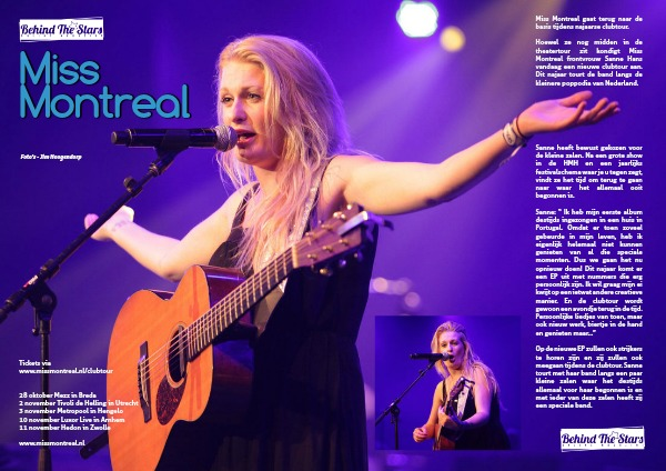 Hoewel ze nog midden in de theatertour zit kondigt Miss Montreal frontvrouw Sanne Hans vandaag een nieuwe clubtour aan. Dit najaar tourt de band langs de kleinere poppodia van Nederland.
