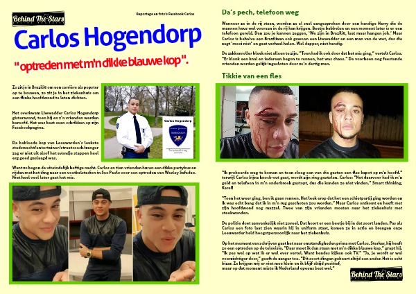 Op het moment van schrijven gaat het naar omstandigheden prima met Carlos. Sterker, hij heeft zo een optreden op de televisie. “Daar moet ik dan staan met m’n dikke blauwe kop,” grapt hij. “Ik pas wel op wat ik er wel over vertel. Want bendes kijken ook TV.” “Ja, je wordt er wel voorzichtiger door,” geeft de zanger toe. “Dit soort dingen gebeurt altijd een ander. Het is echt bizar. Ze krijgen mij er niet mee klein en ik blijf altijd positief,