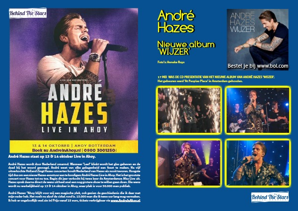 André Hazes wordt door Nederland omarmd. Wanneer ‘Leef' klinkt wordt het glas geheven en de daad bij het woord gevoegd. André weet van elke gelegenheid een feest te maken. Na vijf uitverkochte Holland Zingt Hazes concerten houdt Nederland van Hazes als nooit tevoren. Hoogste tijd dus om een nieuw Hazes-avontuur aan te kondigen: André Hazes Live in Ahoy. Het is het grootste concert voor Hazes tot nu toe. Begin dit jaar verkocht hij twee keer de Amsterdamse Afas Live uit. Hazes sprak daarna direct de wens uit heel snel een nog grotere show te willen gaan doen. Die wens wordt nu werkelijkheid op 13 & 14 oktober in Ahoy, waar plek is voor 30.000 man publiek.