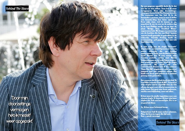 Op een gegeven ogenblik dacht ik: Ja dat zou Jan zo niet willen. Toen ben ik weer teruggegaan. Door mijn doorzettings-vermogen kwam ik bij The Stamps terecht. Via contacten van Jan heb ik in de Sunstudio’s gestaan, waar je voor 5 dollar een karaoke-ding kon laten opnemen. Door mijn stem viel ik ineens zo op, waardoor ik van de ene op de andere dag in de Sam Phillips studio zat en daar de plaat ‘Bridge Over Troubled Water’ opgenomen heb. We kregen toestemming om de beelden die Jan van Elvis’ laatste concert heeft gemaakt te gebruiken in de videoclip. Priscilla Presley heeft de toestemming zelf gegeven. Dat was ook heel bijzonder.
