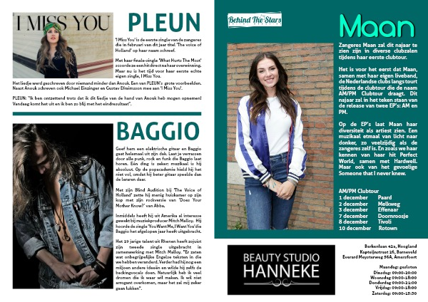 Het 19 jarige talent uit Rhenen heeft zojuist zijn tweede single uitgebracht in samenwerking met Mitch Malloy. "Er zaten wat onbegrijpelijke Engelse teksten in die we hebben veranderd. Verder had hij nog een miljoen andere ideeën en wilde hij zelfs de backingvocals doen. Natuurlijk heb ik veel dromen die ik waar wil maken. Ik wil niet arrogant overkomen, maar het zal mij zeker gaan lukken".