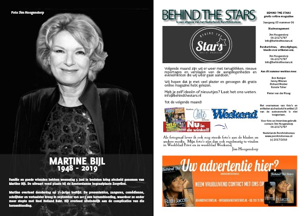 Martine overleed donderdag op 71-jarige leeftijd. De presentatrice, zangeres, comédienne, schrijfster en vertaalster kreeg in september van 2015 een hersenbloeding, waardoor ze onder meer stopte met Heel Holland Bakt. Bijl overleed uiteindelijk aan de complicaties van die hersenbloeding.
