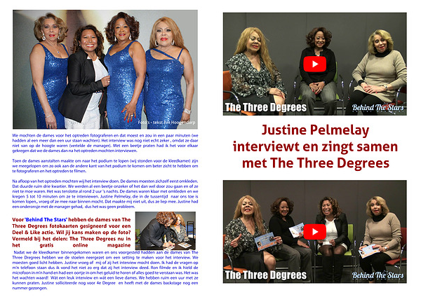 Voor 'Behind The Stars' hebben de dames van The Three Degrees fotokaarten gesigneerd voor een Deel & Like actie. Wil jij kans maken op de foto? Vermeld bij het delen: The Three Degrees nu in het gratis online magazine www.behindthestars.nl