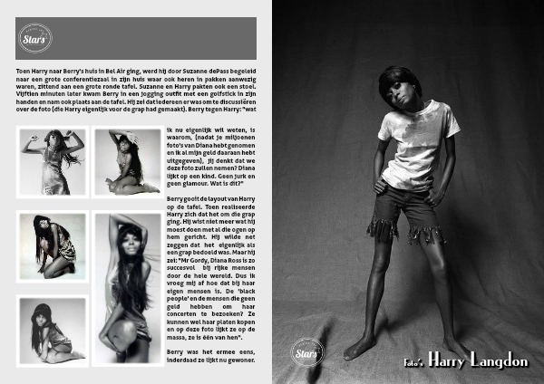 Berry gooit de layout van Harry op de tafel. Toen realiseerde Harry zich dat het om die grap ging. Hij wist niet meer wat hij moest doen met al die ogen op hem gericht. Hij wilde net zeggen dat het eigenlijk als een grap bedoeld was. Maar hij zei: "Mr Gordy, Diana Ross is zo succesvol bij rijke mensen door de hele wereld. Dus ik vroeg mij af hoe dat bij haar eigen mensen is. De 'black people' en de mensen die geen geld hebben om haar concerten te bezoeken? Ze kunnen wel haar platen kopen en op deze foto lijkt ze op de massa, ze is één van hen".