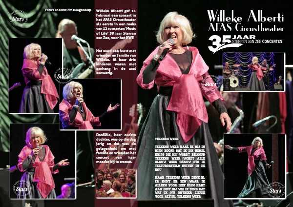 Willeke Alberti gaf 11 Februari een concert in het AFAS Circustheater als eerste in een reeks van 12 concerten 'Music of Life' 35 jaar Sterren aan Zee, voor het KWF.