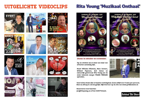 Naast Willeke D'Estelle, Hans Somers, Wilbert Pigmans, Zoƫ Sabee en natuurlijk gastvrouw Rita Young zal de alom bekende zanger FRANK FERRARI optreden.