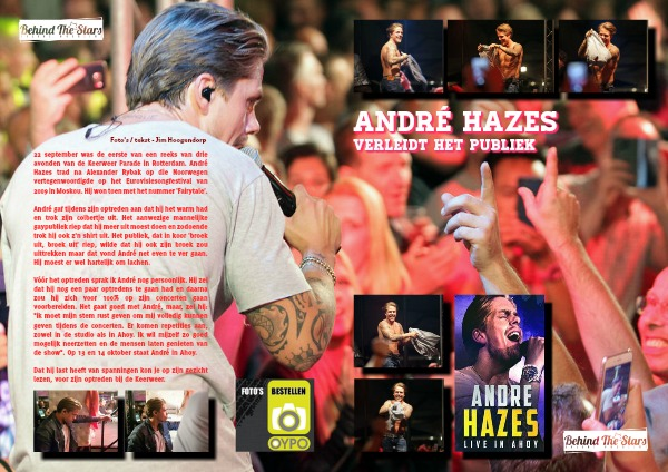 Vóór het optreden sprak ik André nog persoonlijk. Hij zei dat hij nog een paar optredens te gaan had en daarna zou hij zich voor 100% op zijn concerten gaan voorbereiden. Het gaat goed met André, maar, zei hij: "ik moet mijn stem rust geven om mij volledig kunnen geven tijdens de concerten. Er komen repetities aan, zowel in de studio als in Ahoy. Ik wil mijzelf zo goed mogelijk neerzetten en de mensen laten genieten van de show". Op 13 en 14 oktober staat André in Ahoy.