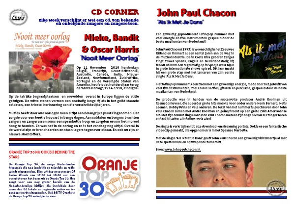 John Paul Chacon (1993) is woonachtig in het Zeeuwse Rilland en timmert al een aantal jaren aan de weg in de muziekindustrie. De in Costa Rica geboren zanger zingt zowel Spaans, Engels en Nederlandstalig hij treedt daarom ook regelmatig op in Spanje waar hij al in grote internationale shows optrad. Dit jaar maakt hij een grote stap met het lanceren van zijn eerste single 'Als Ik Met Je Dans'.