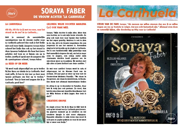 STEUN VAN DE FANS Soraya: “Als mensen me willen steunen dan zou ik ze willen vragen om me op Youtube te volgen. Dat zou echt fantastisch zijn.” Allemaal even doen en natuurlijk kijken, elke donderdag op RTL5 naar La Carihuela!