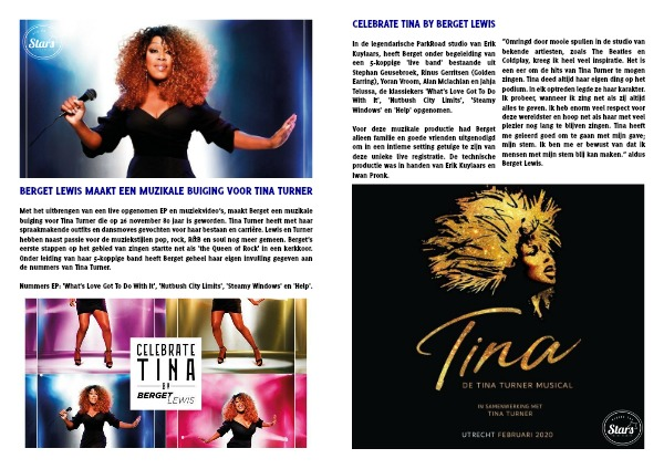 “Omringd door mooie spullen in de studio van bekende artiesten, zoals The Beatles en Coldplay, kreeg ik heel veel inspiratie. Het is een eer om de hits van Tina Turner te mogen zingen. Tina deed altijd haar eigen ding op het podium. In elk optreden legde ze haar karakter. Ik probeer, wanneer ik zing net als zij altijd alles te geven. Ik heb enorm veel respect voor deze wereldster en hoop net als haar met veel plezier nog lang te blijven zingen. Tina heeft me geleerd goed om te gaan met mijn gave; mijn stem. Ik ben me er bewust van dat ik mensen met mijn stem blij kan maken.’’ aldus Berget Lewis.