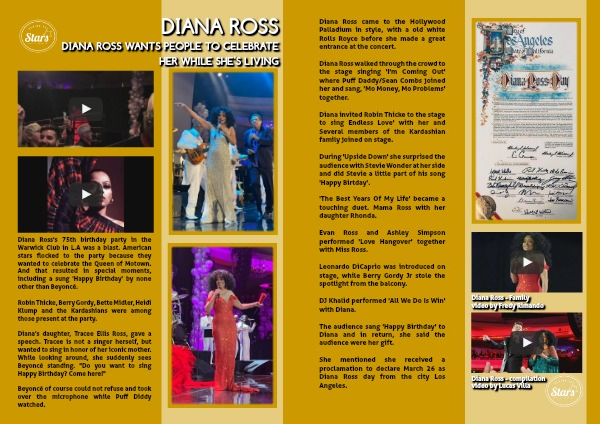 She mentioned she received a proclamation to declare March 26 as Diana Ross day from the city Los Angeles.
