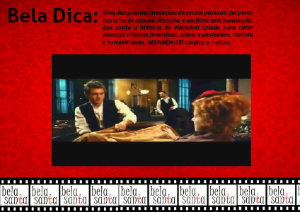 Uma das grandes invenções do século passado, foi parar nas telas do cinema. Histeria, é um filme bem humorado, que conta a história do vibrador! Criado para curar doenças crõnicas femininas, como: a ansiedade, insônia e irritabilidade. INSPIREM-SE! Confira o trailler.