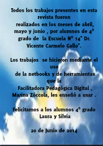 realizados en los meses de abril, mayo y junio , por alumnos de 4º grado de la Escuela Nº 14" Dr. Vicente Carmelo Gallo".