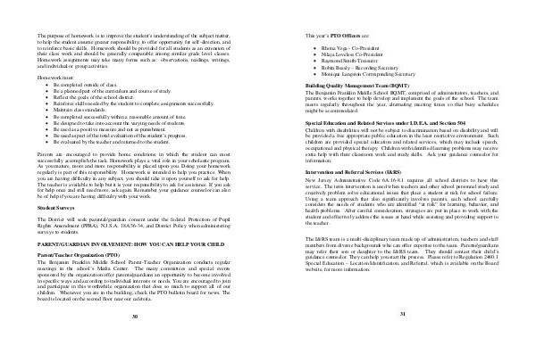 The Benjamin Franklin Middle School Parent-Teacher Organization conducts regular meetings in the school’ s Media Center. The many committees and special events sponsored by the organization offer parents / guardians an opportunity to become involved in specific ways and according to individual interests or needs. You are encouraged to join and participate in this worthwhile organization that does so much to support all of our children. Whenever you are in the building, check the PTO bulletin board for news. The board is located on the second floor near our cafeteria.