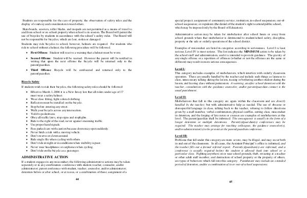 level. The parent/guardian shall be informed. The consequence is usually in the form of a