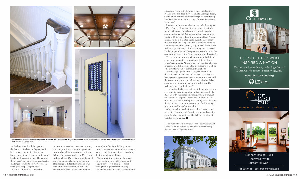 The student body is excited about the new space, too, according to Sagarin. Enrollment has increased by 10 students with the impending move, which is unusual for the school. Sagarin, White, and O’ Brient all say they look forward to having a welcoming space for both the school and community events and further integration into Stockbridge’ s town fabric.