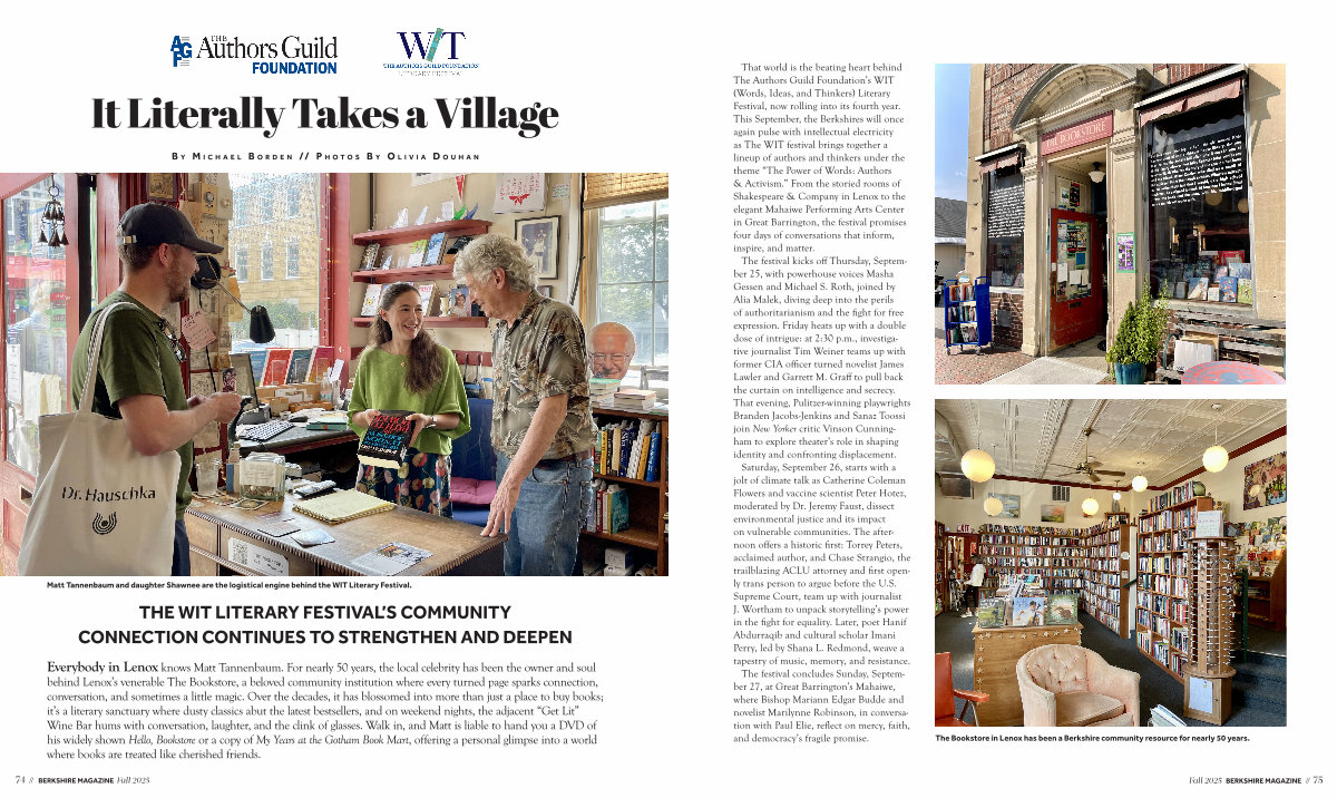 Everybody in Lenox knows Matt Tannenbaum. For nearly 50 years, the local celebrity has been the owner and soul behind Lenox’ s venerable The Bookstore, a beloved community institution where every turned page sparks connection, conversation, and sometimes a little magic. Over the decades, it has blossomed into more than just a place to buy books; it’ s a literary sanctuary where dusty classics abut the latest bestsellers, and on weekend nights, the adjacent“ Get Lit” Wine Bar hums with conversation, laughter, and the clink of glasses. Walk in, and Matt is liable to hand you a DVD of his widely shown Hello, Bookstore or a copy of My Years at the Gotham Book Mart, offering a personal glimpse into a world where books are treated like cherished friends.