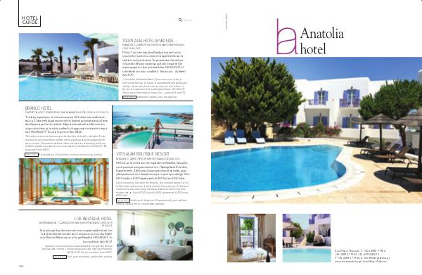 Το lobby παραπέ µ πει σε chic κατοικία του’ 60 bohemiam αισθητικής, ενώ τα 21 sea view δω µ άτια και σουίτες( κάποια µ ε private jacuzzi) είναι εξοπλισ µ ένα µ ε όλες τις ανέσεις. Εξαιρετική η natural αισθητική στον χώρο της πισίνας με τα άνετα sunbeds, σε αρ µ ονική συνέχεια της παραλίας! ΗΙGHLIGHT: Tο εστιατόριό του! Από € 420