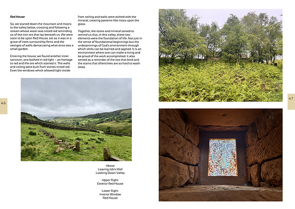 So, we started down the mountain and moors to the valley below, crossing and following a stream whose water was tinted red reminding us of the iron ore that lay beneath us. We were soon to be upon Red House, set as it was in a grove of trees surround by ferns and the vestiges of walls demarcating what once was a small garden.