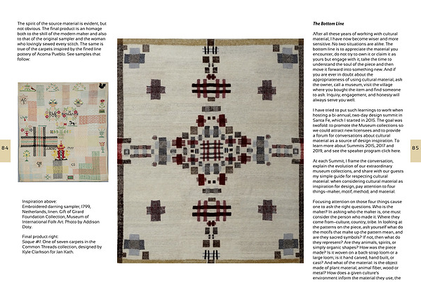 At each Summit, I frame the conversation, explain the evolution of our extraordinary museum collections, and share with our guests my simple guide for respecting cultural material: when considering cultural material as inspiration for design, pay attention to four things–maker, motif, method, and material.