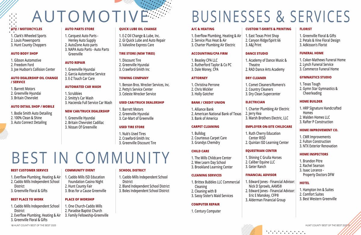 10 HUNT COUNTY BEST OF THE BEST 2025