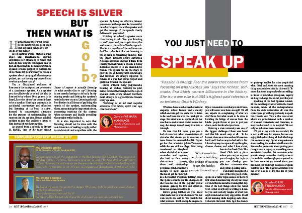 COMPLIMENTS FOR BEST SPEAKER 2017