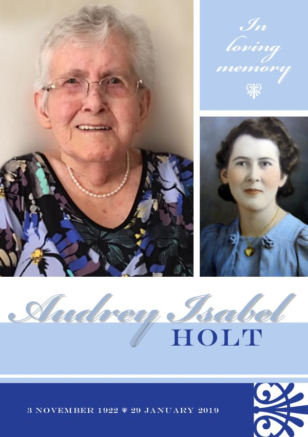 loving memory Audrey Isabel Holt 3 November 1922 29 January 2019