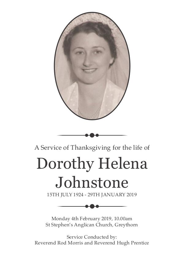 Bethel Funerals Dorothy Johnstone Funeral Booklet