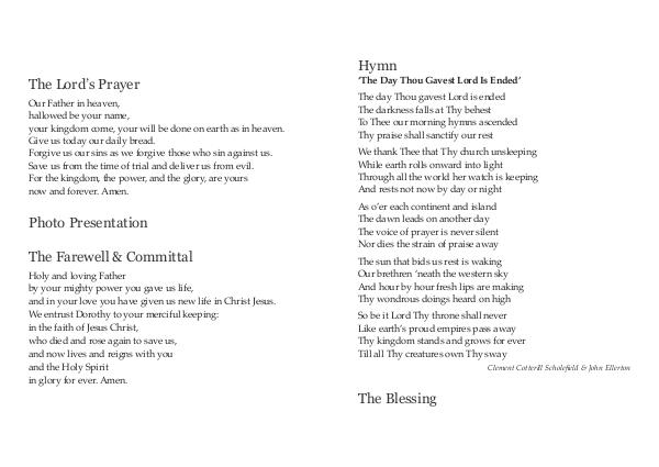 We entrust Dorothy to your merciful keeping: